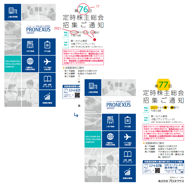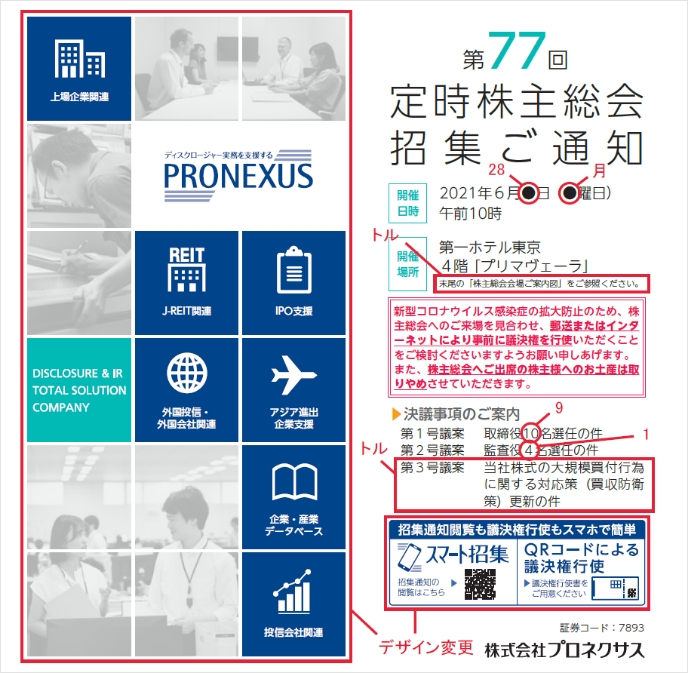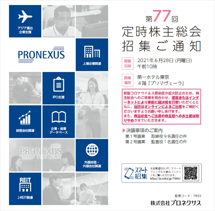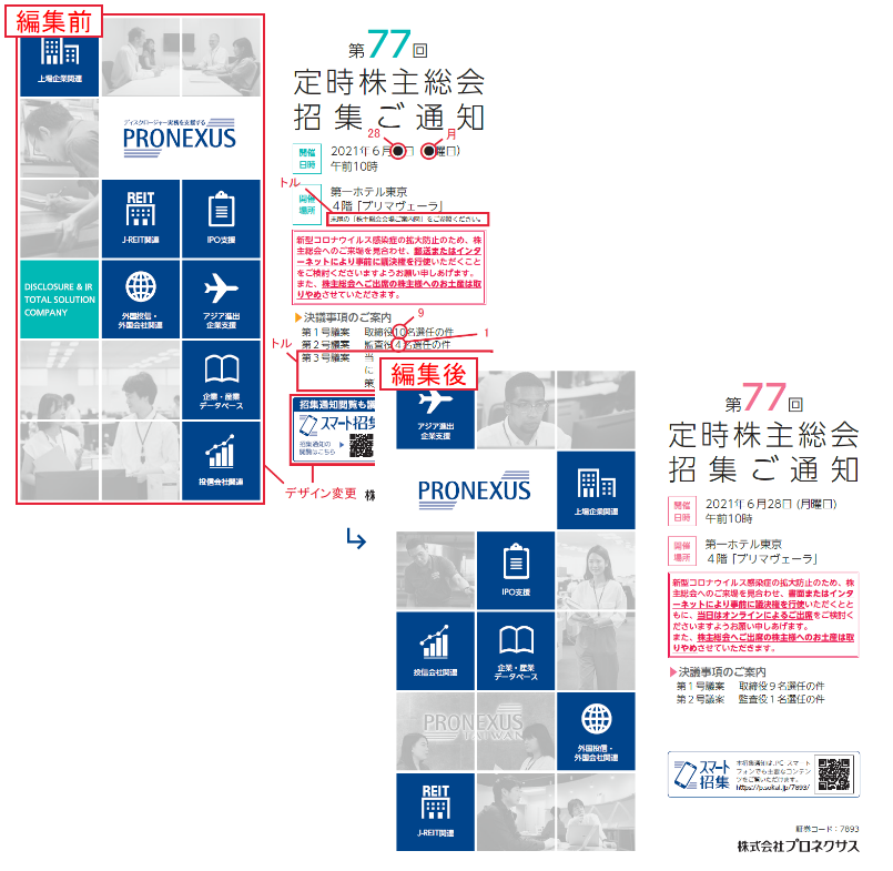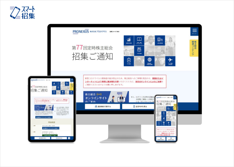 株主総会招集通知のポイントを抜粋して、スマートフォンやタブレット・パソコンでも閲覧いただけるWeb化サービスとして「スマート招集」の制作を行います。