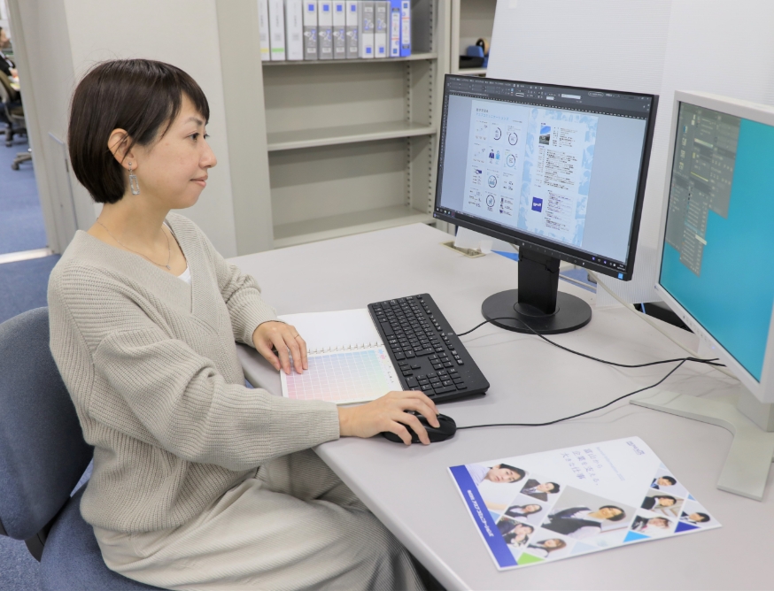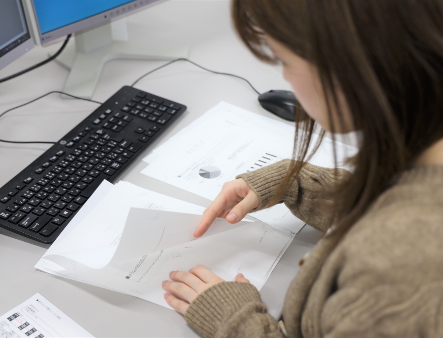お客様の要望に基づき、当社で編集したデータに誤りが無いか、原稿通りに作成されているかについて、文字や体裁を確認、検査しています。様々な校正技術を駆使して作業することで、品質を保証する重要な役割を担っています。